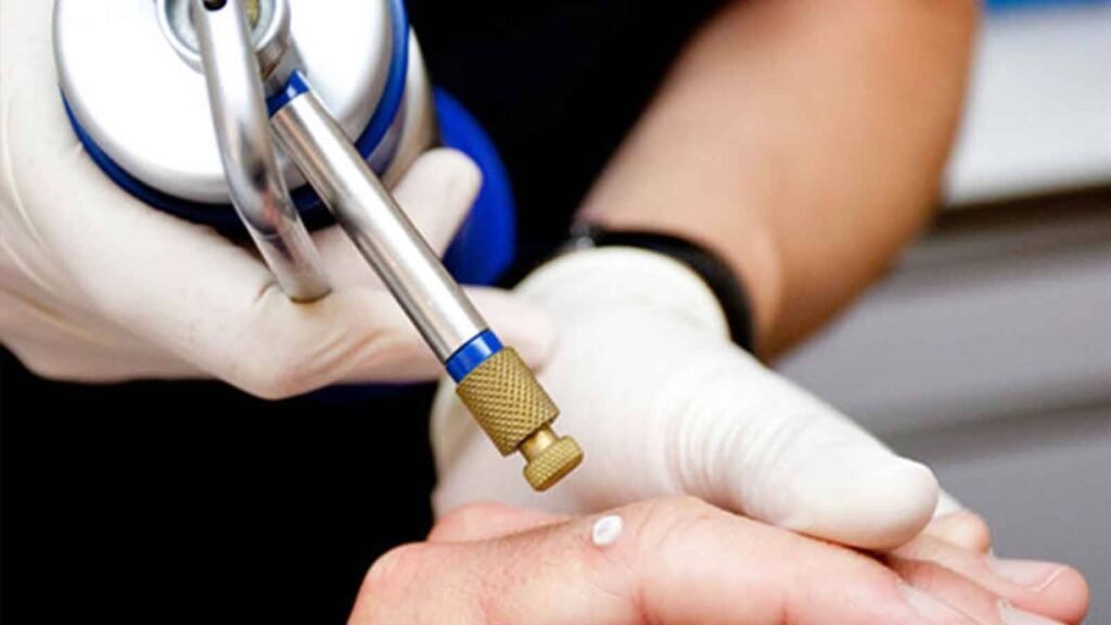 Krioterapi istenmeyen cilt lezyonunun sıvı nitrojen gazı ile dondurularak yokedilmesi yöntemidir.